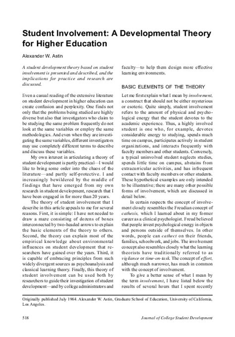 Free Reading student involvement a developmental theory for higher Download Now PDF